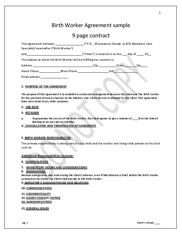 Postpartum Doula/Newborn Care Specialist Contract 05/22/2018