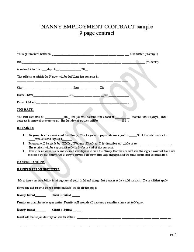 • Clarifies Responsibilities – Lists nanny duties in detail, including childcare, newborn care, and optional household tasks.